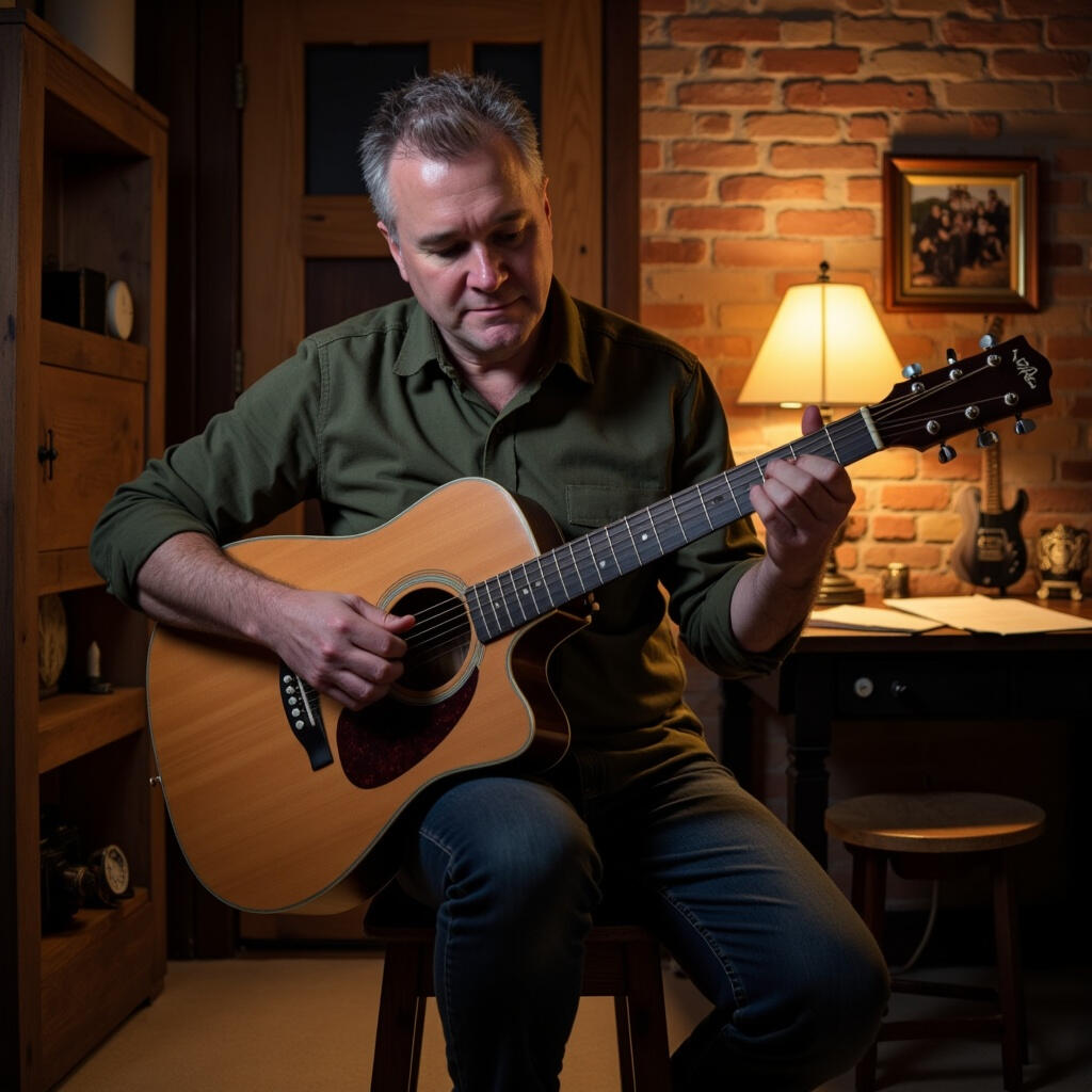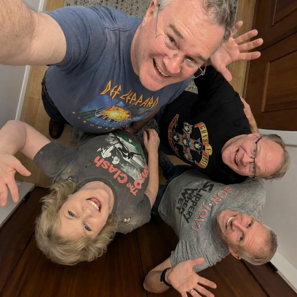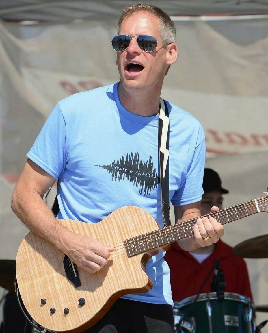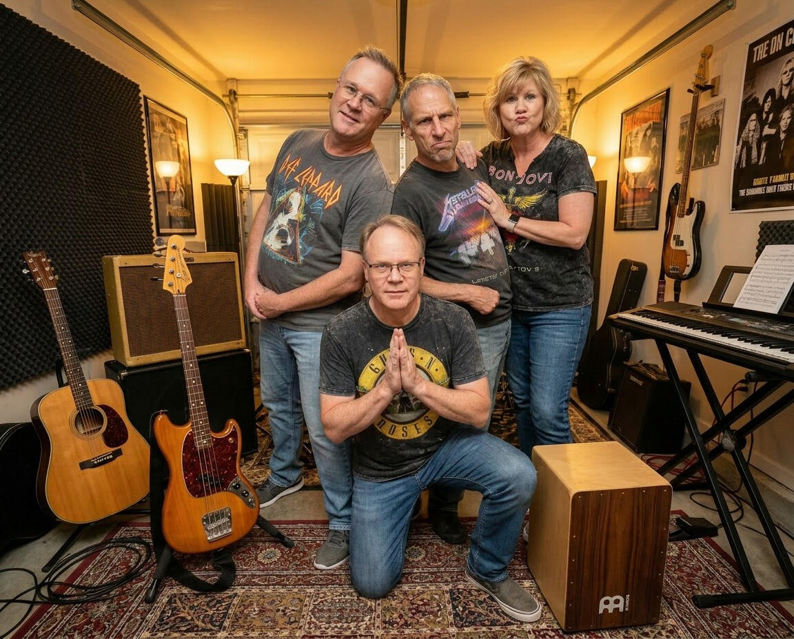 These days, when he’s not on his route, Adam spends his spare time with his family—husband to Lori, proud dad of three daughters and a grandfather of six. In his other spare time, Adam helps arrange our music, often quietly shaping the direction of what we do and making the rest of us sound far more professional than we actually are. And beyond that he is a songwriter, crafting original material that blends strong melody with thoughtful structure. And an author...come on we get it already...you are a creative genius!And then there’s Tom—his guitar. Tom is not just an instrument, but a full-time member of Adam’s musical identity. He’s been with him through rehearsals, gigs, and late-night writing sessions, always perfectly dialed in and somehow exactly what the song needs. Adam doesn’t just play Tom—he talks to him like an old friend, trusts him like a partner, and refuses to let anyone else get too comfortable with him. At this point, it’s hard to tell where Adam ends and Tom begins—and neither of them seem interested in explaining it.