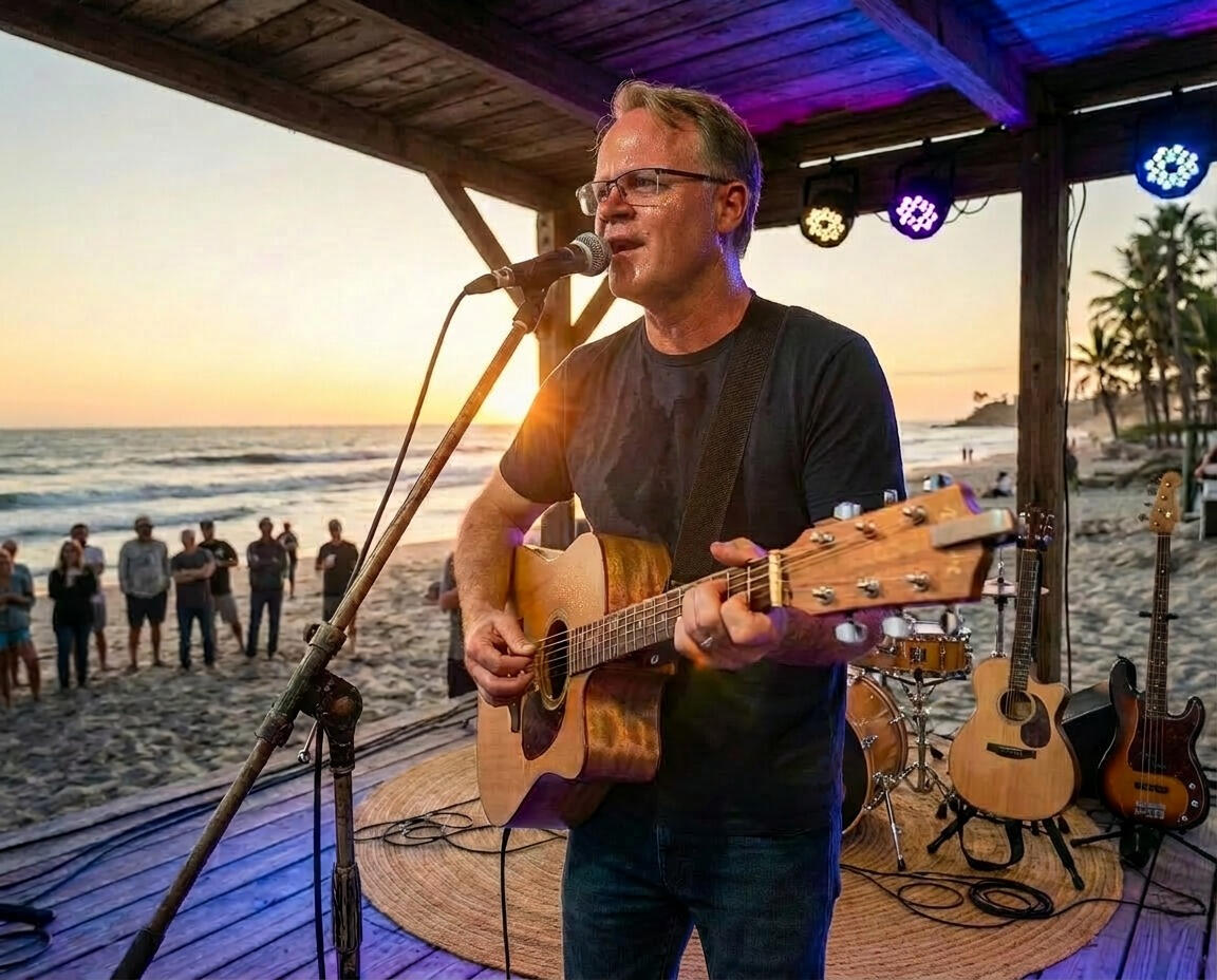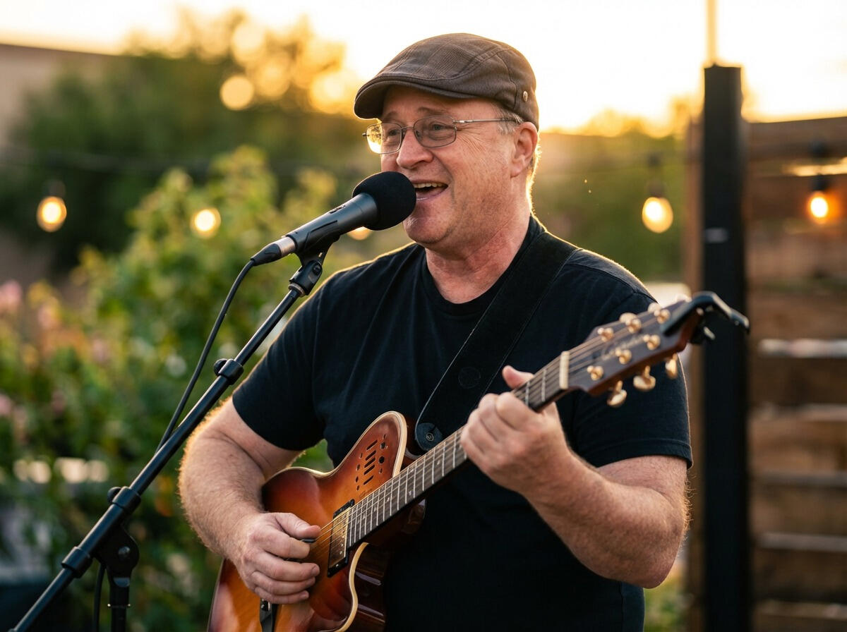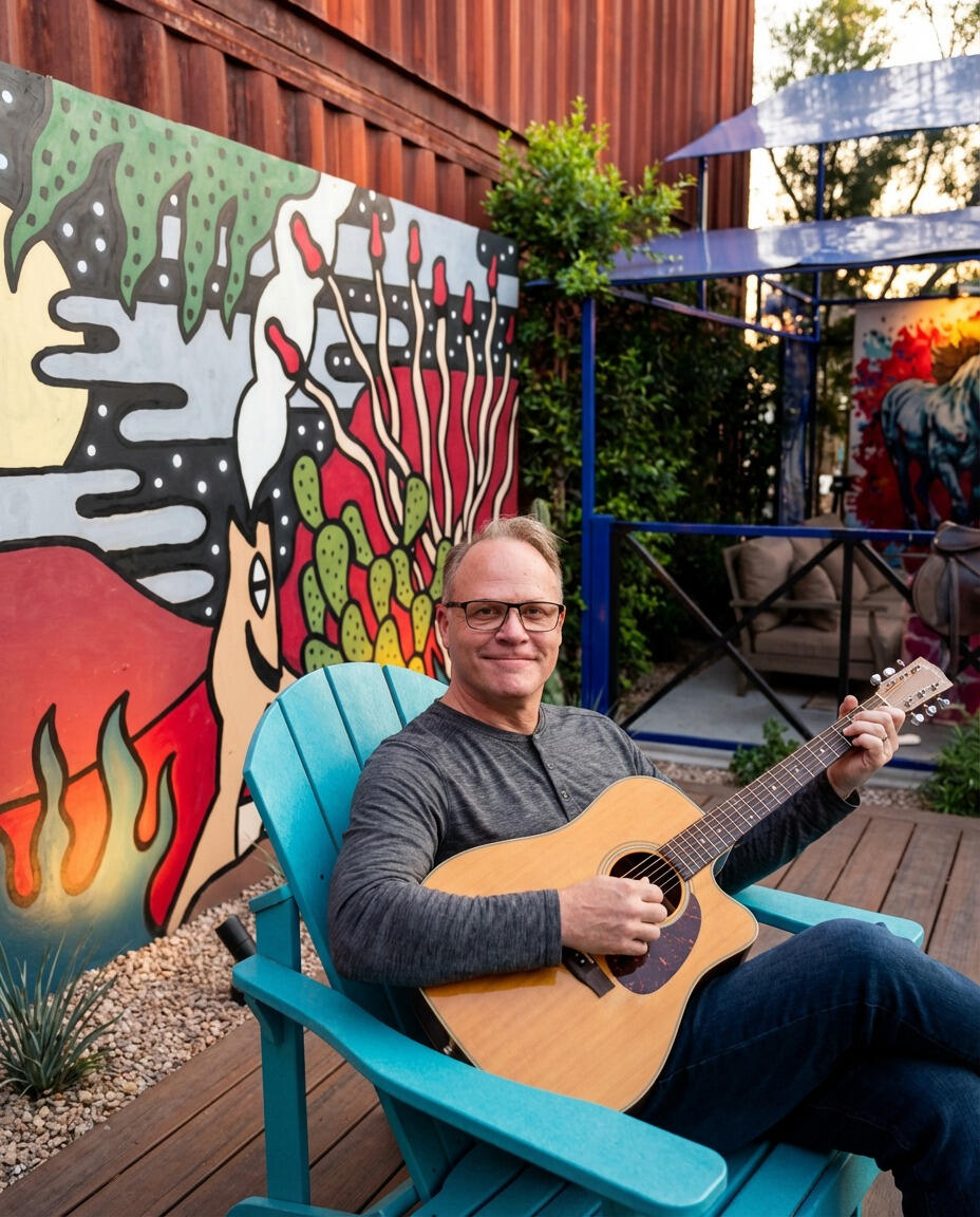 Dave Manley is a Phoenix-based performer known for his engaging personality, strong vocals, and relaxed acoustic style. Often called “Super Dave” by friends and fellow musicians, he has a natural ability to turn a crowd into a community, making audiences feel like part of the show rather than just spectators. His performances focus on the songs people grew up with—music that sparks memories and invites everyone to sing along. With a mix of storytelling, humor, and approachable stage presence, Dave’s goal is simple: create a fun atmosphere where people can relax, connect, and enjoy the shared experience of great songs.Dave’s musical path has been anything but ordinary. He spent several years performing as a cantorial soloist at multiple synagogues, developing both vocal strength and a deep connection to music’s emotional roots. He later helped to form a Phoenix based Jewish rock band with the unforgettable name Yehudie and the Gefile Fish, blending tradition Jewish music with modern Jewish camp songs.